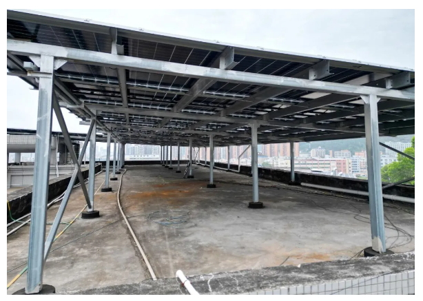 在施工环境方面,1、2号厂区和宿舍楼屋面的情况较为复杂。屋面原有隔热砖杂乱无章,这无疑给施工带来了额外的工作量。而1号厂房存在多处高低落差,而组件矩阵对接必须做到横平竖直,进一步增加了施工的难度。