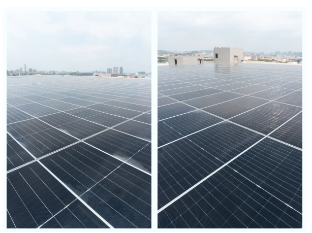 这座光伏电站位于广东,装机容量为629kW,年发电量约为65万度,项目应用了1000多块单晶硅光伏组件,每年节省电费预估高达59万元。