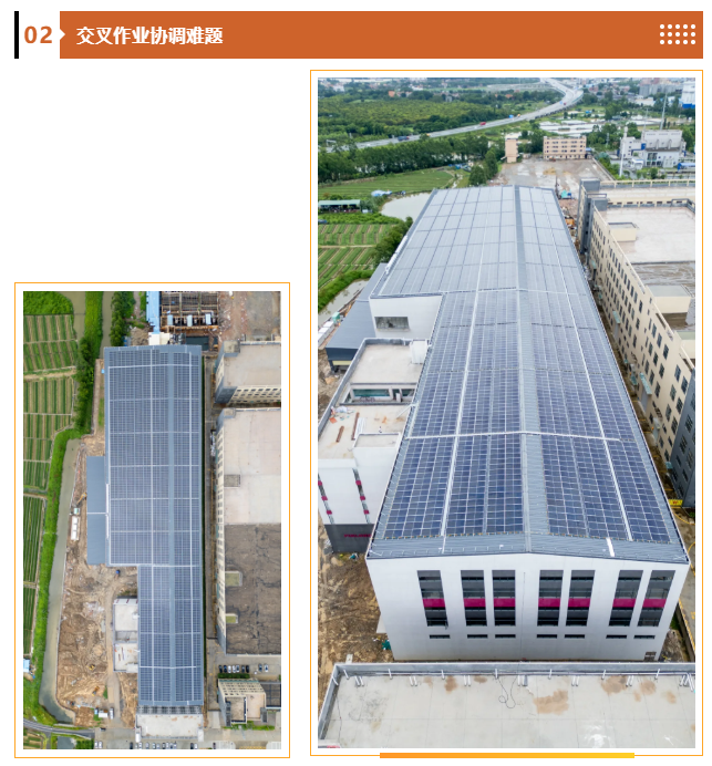 项目施工期间,厂房正处于全面建设阶段,土建施工、装修工程、路面硬化等多项作业同步进行,各类施工班组交叉作业频繁。特别是光伏材料堆放与吊装作业与其他施工工序之间存在较大空间与时间协调难度。