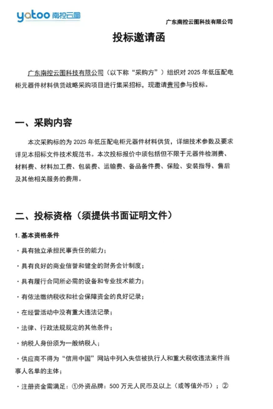 广东南控云图 2025 年低压配电柜元器件材料供货战略采购招标.pdf